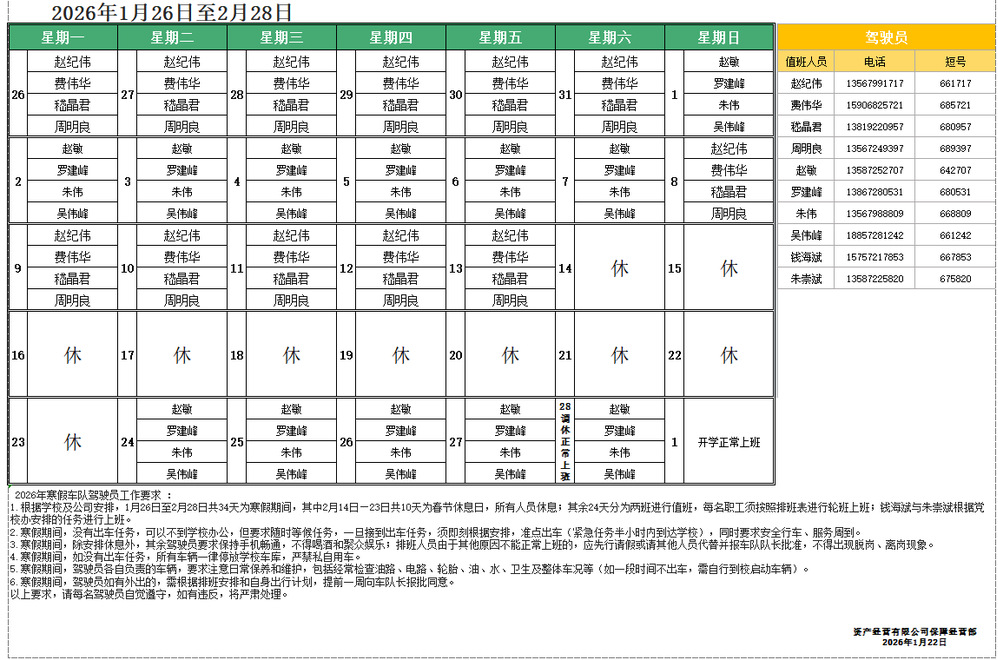 资产经营有限公司2026年车队寒假值班表.xlsx